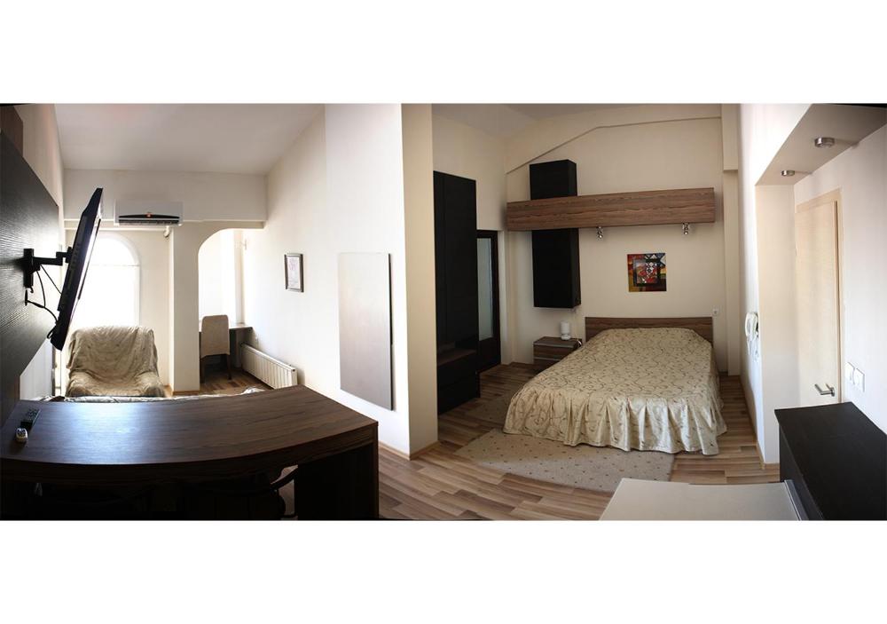The Standard Double Room at Hotel Ambasador Skopje offers a welcoming space with a comfortable double bed and modern decor, ideal for a relaxing stay.